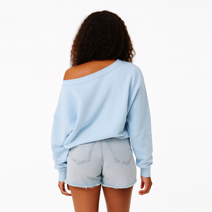This off-the-shoulder sweatshirt is a nod to the timeless grace of Spelman women. Designed in a soft light blue hue with delicate embroidery, this relaxed silhouette drapes beautifully across the neckline. Perfect for layering or wearing solo, a stylish standout for class, brunch, or Homecoming weekend.