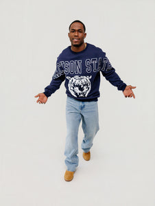 All eyes on your alma mater. This Jackson State University Exploded Graphic Sweatshirt features oversized collegiate graphics across the chest, soft fleece interior, and standout school pride. A statement-making staple.